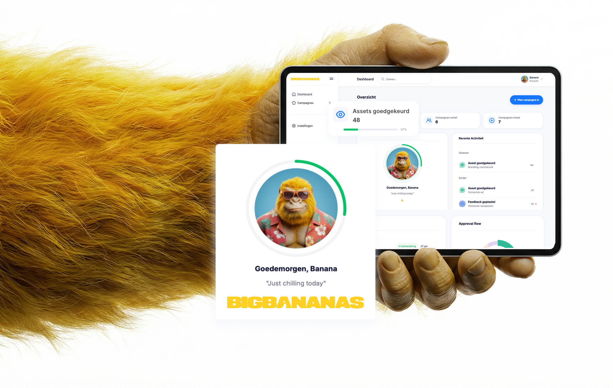 BigBananas is hét content-abonnement voor ondernemers die willen groeien met converterende advertenties. Wij leveren elke maand een complete set content: visuals, copy en short-form video’s, gemaakt met AI en afgestemd op jouw merk en doelstellingen. Of je nu een webshop runt of diensten aanbiedt of structureel zichtbaar wilt zijn als ondernemer: wij maken advertenties die presteren.